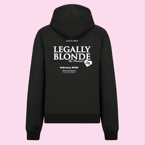 This Limited Edition Hoodie is available exclusively to students performing in Legally Blonde Jr. Choose from Pink (fuchsia) or Black.