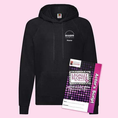 This Limited Edition Hoodie is available exclusively to students performing in Legally Blonde Jr. Choose from Pink (fuchsia) or Black.